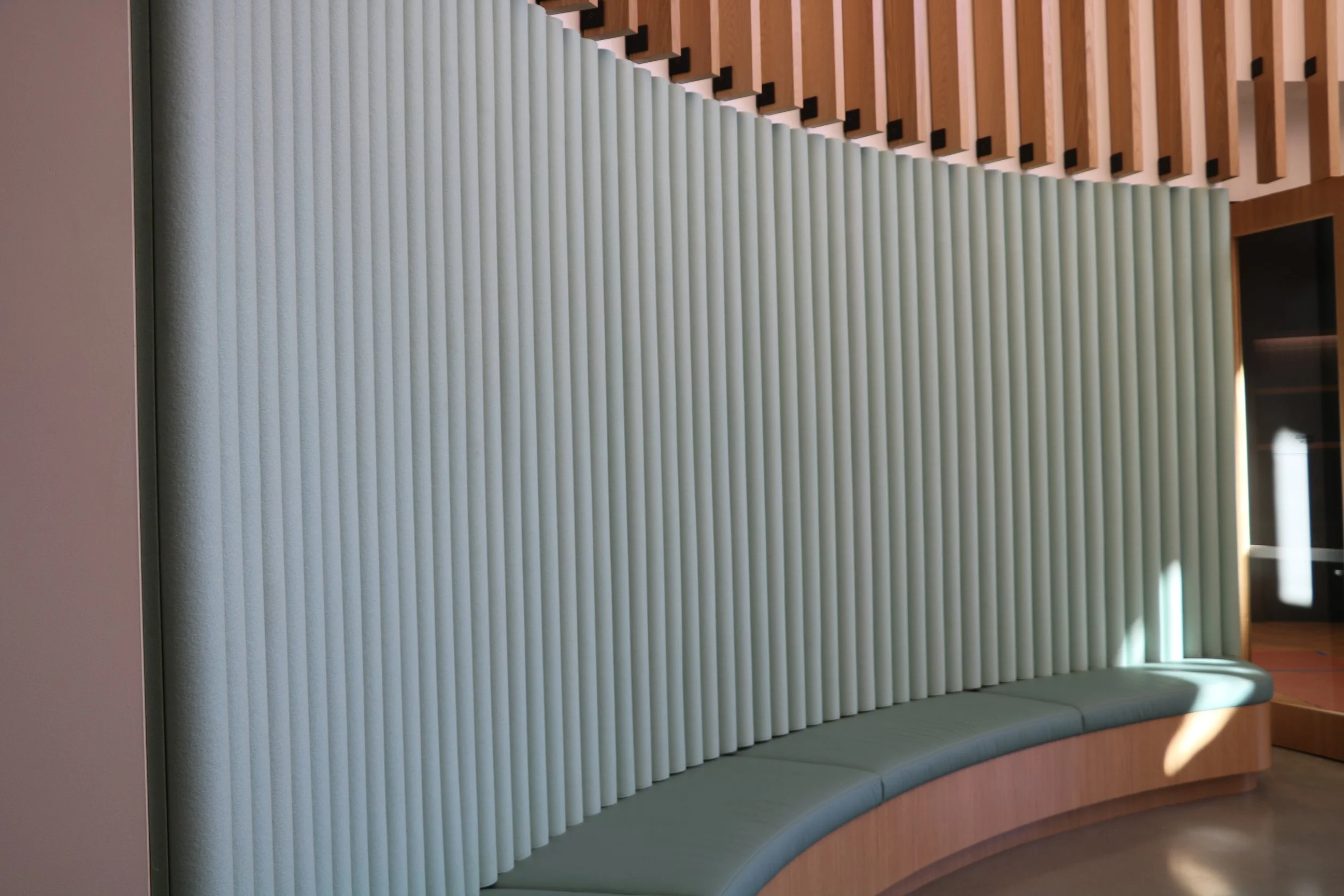 Acoustic solutions improve sound control while enhancing visual design. Using felt, wood, PET panels, and custom configurations, we reduce noise and elevate comfort in shared spaces. Every solution is engineered to balance performance, aesthetics, and architectural integration.
